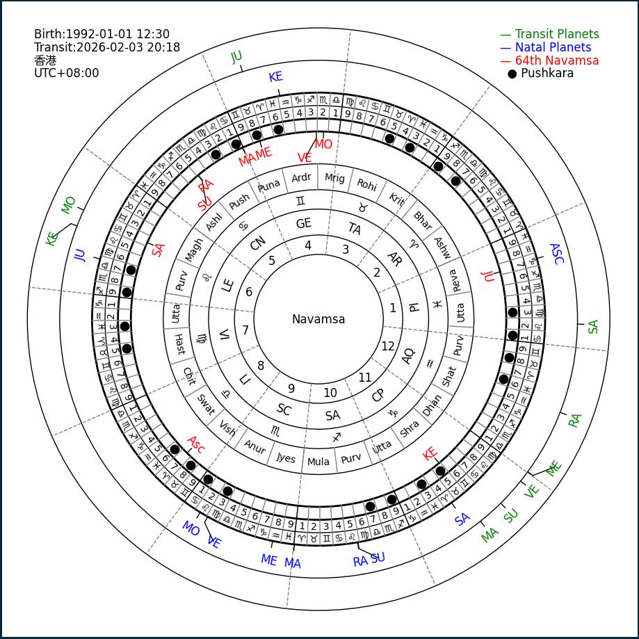 此程式提供印度吠陀星盤查詢,涵蓋南印度和北印度兩種格式的本命星盤,附帶15種常用的分盤(Varga)。此程式需經過大量精密的天文計算,將120年大運的每個階段細分爲Mahadasha, Antardasha, Pratyantardasha,最終需繪製16張星盤圖,故無法即時顯示命盤,敬請耐心等待20秒。如您發此程式現有錯誤之處,請在留言區指正。